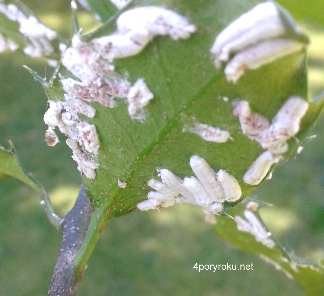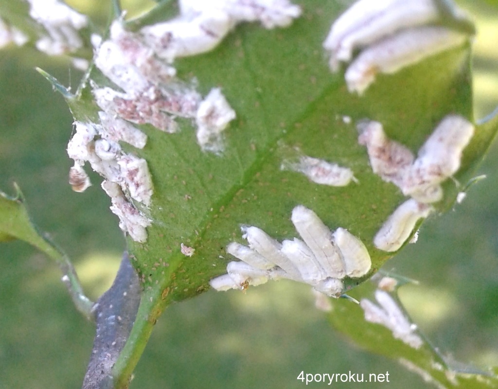 Owad z rodziny czerwcowatych - pluskwiak równoskrzydły. Samice oraz larwy żerują na górnej i dolnej stronie liści, ogonkach i łodygach.