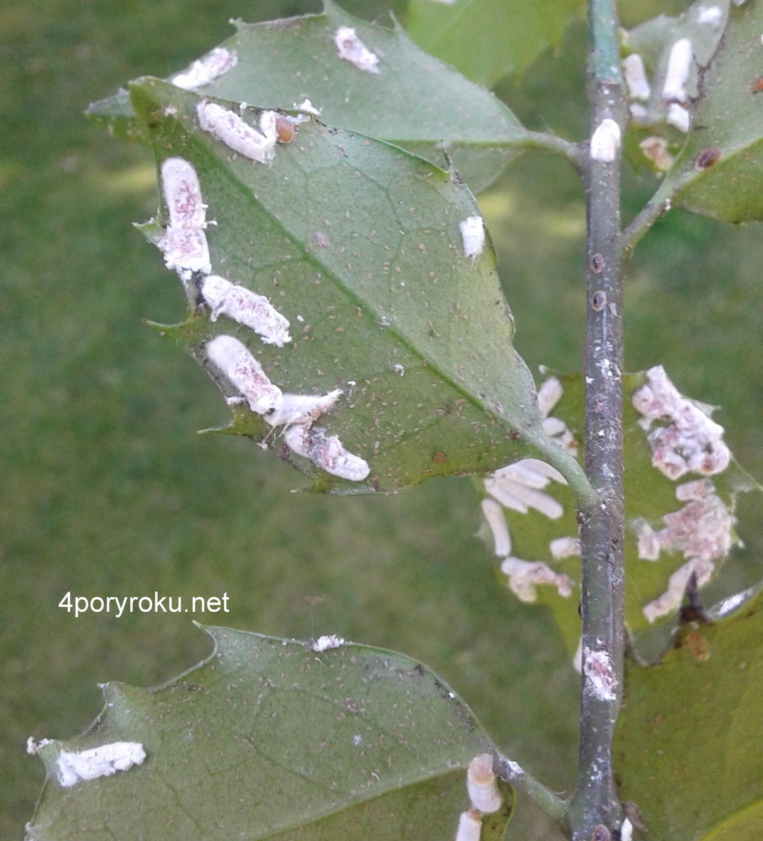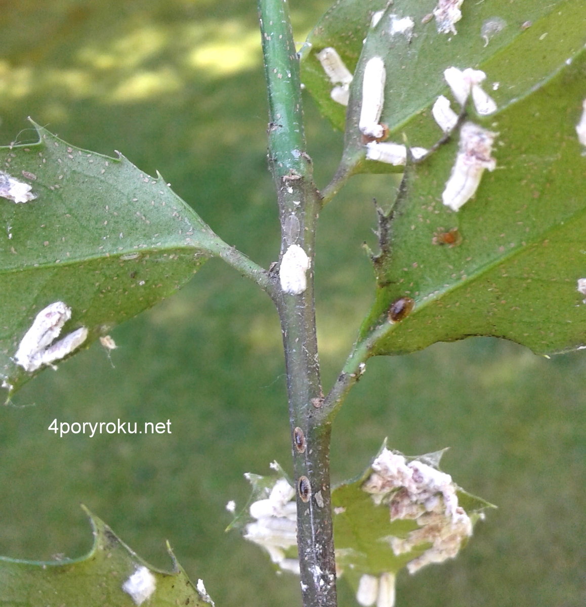 Larwy żerują na liściach do późnej jesieni, a następnie przemieszczają się na pędy i zimują.
