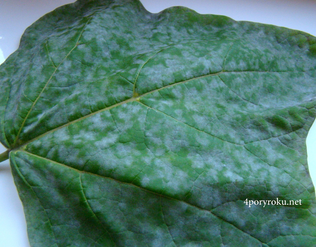 Choroba wywołana przez grzyb. Na zielonych częściach rośliny występuje charakterystyczny mączysty, biały nalot. Z czasem grzybnia ciemnieje, brunatnieje i wytwarza kuliste owocniki.