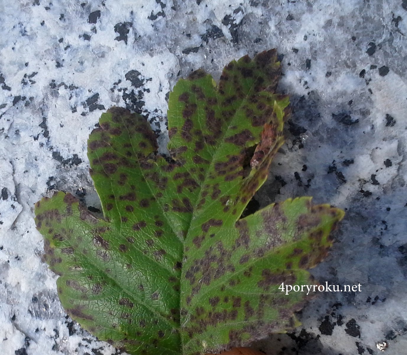 Późną wiosną na górnej stronie liści głogu występują liczne ciemnobrązowe plamy, które z czasem zlewają się ze sobą. Na dolnej stronie liścia plamy są jaśniejsze.
