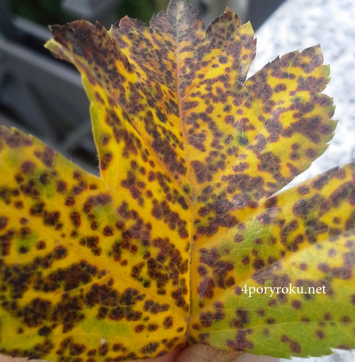 Zwiększająca się ilość plam powoduje gwałtowne żółknięcie, brązowienie i opadanie liści.