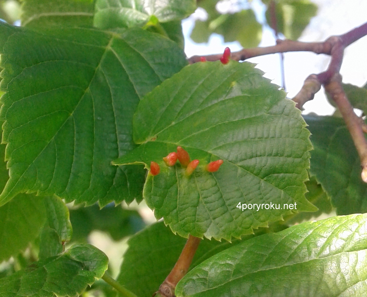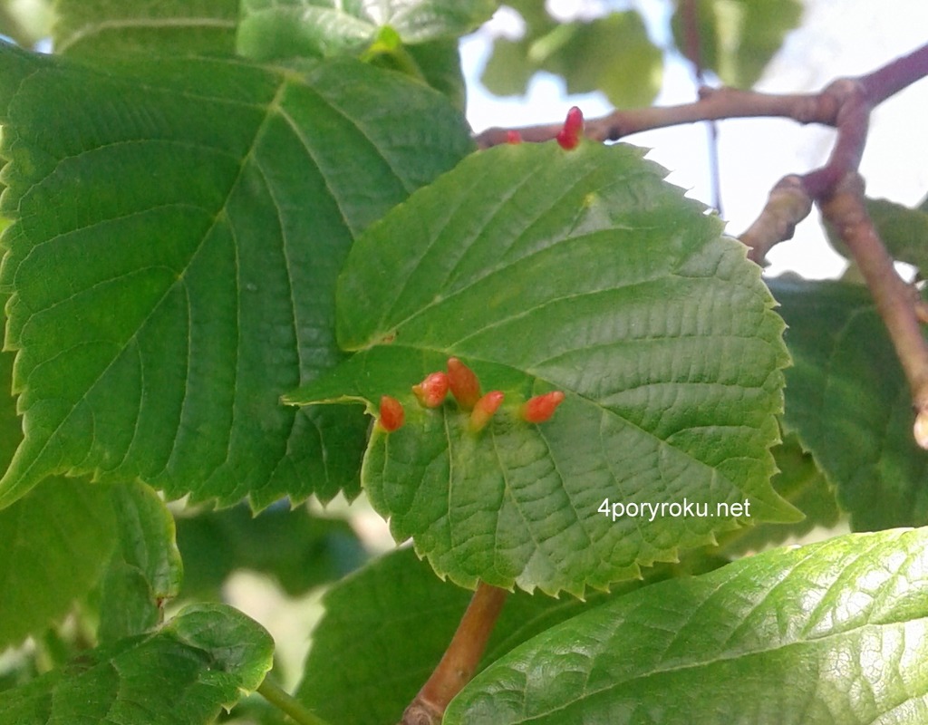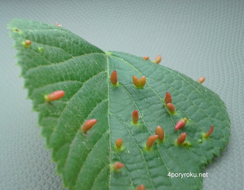 Stożkowe galasy na liściach lipy