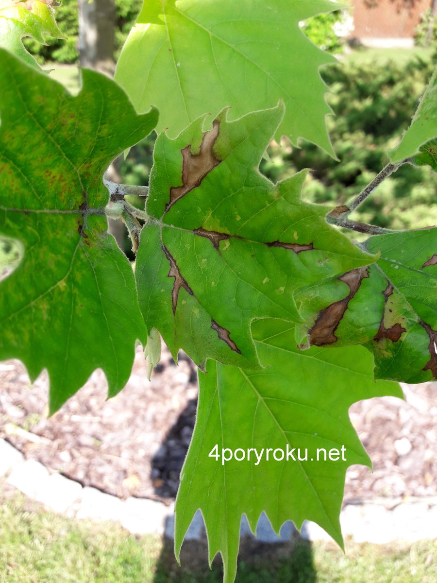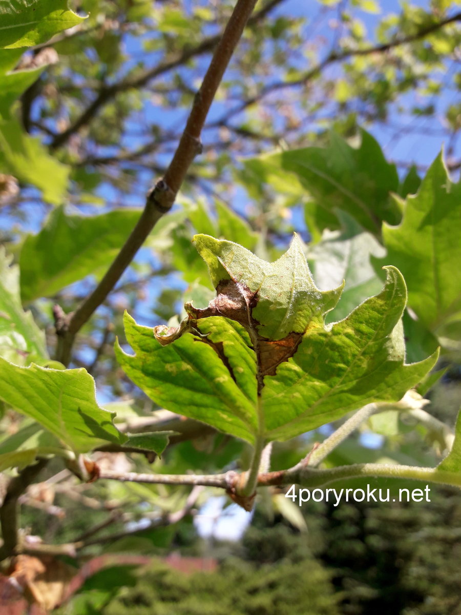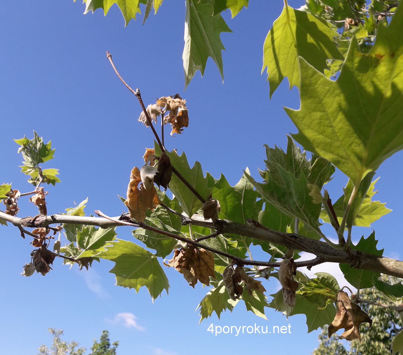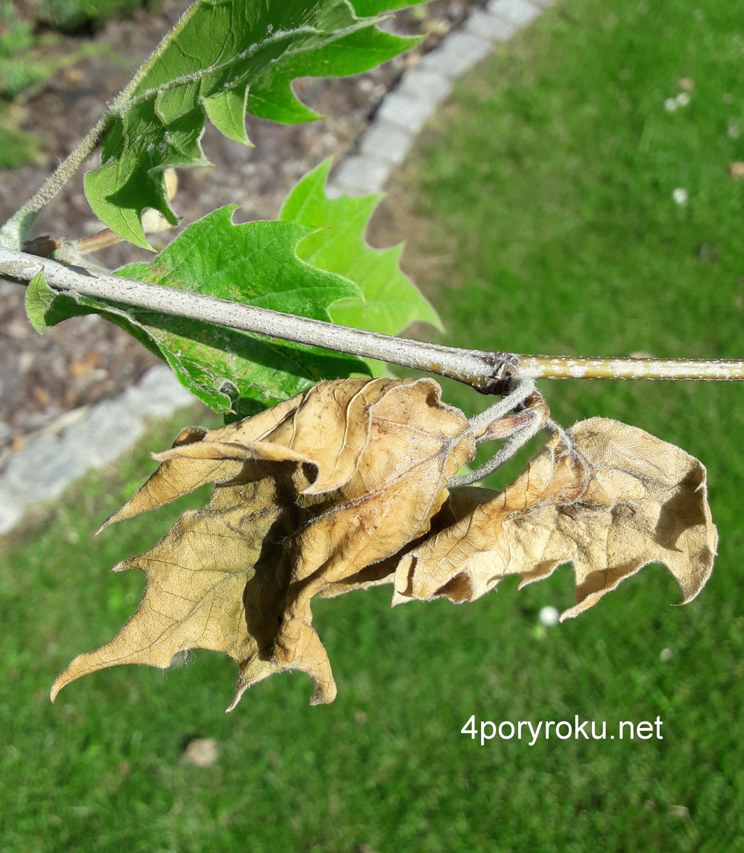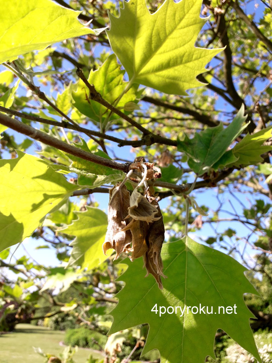 Usychające liście platana
