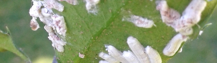 Na blaszce liściowej ostrokrzewu pojawiają się białe przecinki o długości 3-4 mm.